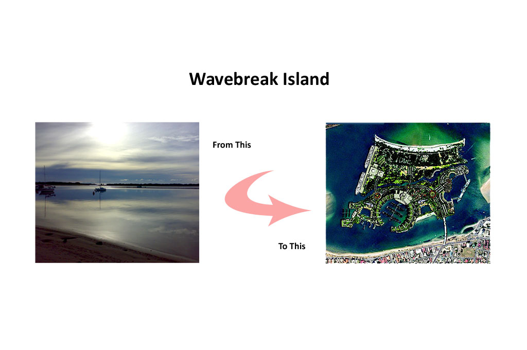 A $4.9 billion dollar development has been proposed for Wavebreak Island. The birds eye view plan provided here looks